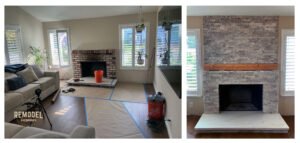 Very pleased with the broken marble materials the client chose. This took 2 days. The structures over the spans can get tricky. We’re awaiting the mantle.