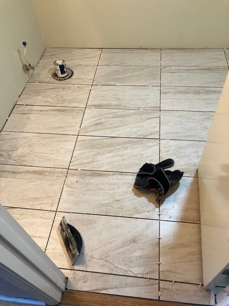 Older homes settle, which means uneven walls and non-planed floors, and out-of-square corners. This is tricky for tile. This client wanted a tile baseboard. I ended up free-handing the toilet drain opening cut with a black widow blade on the angle grinder. I used a polymer-modified mortar, which was sufficient for the baseboard. Because these …