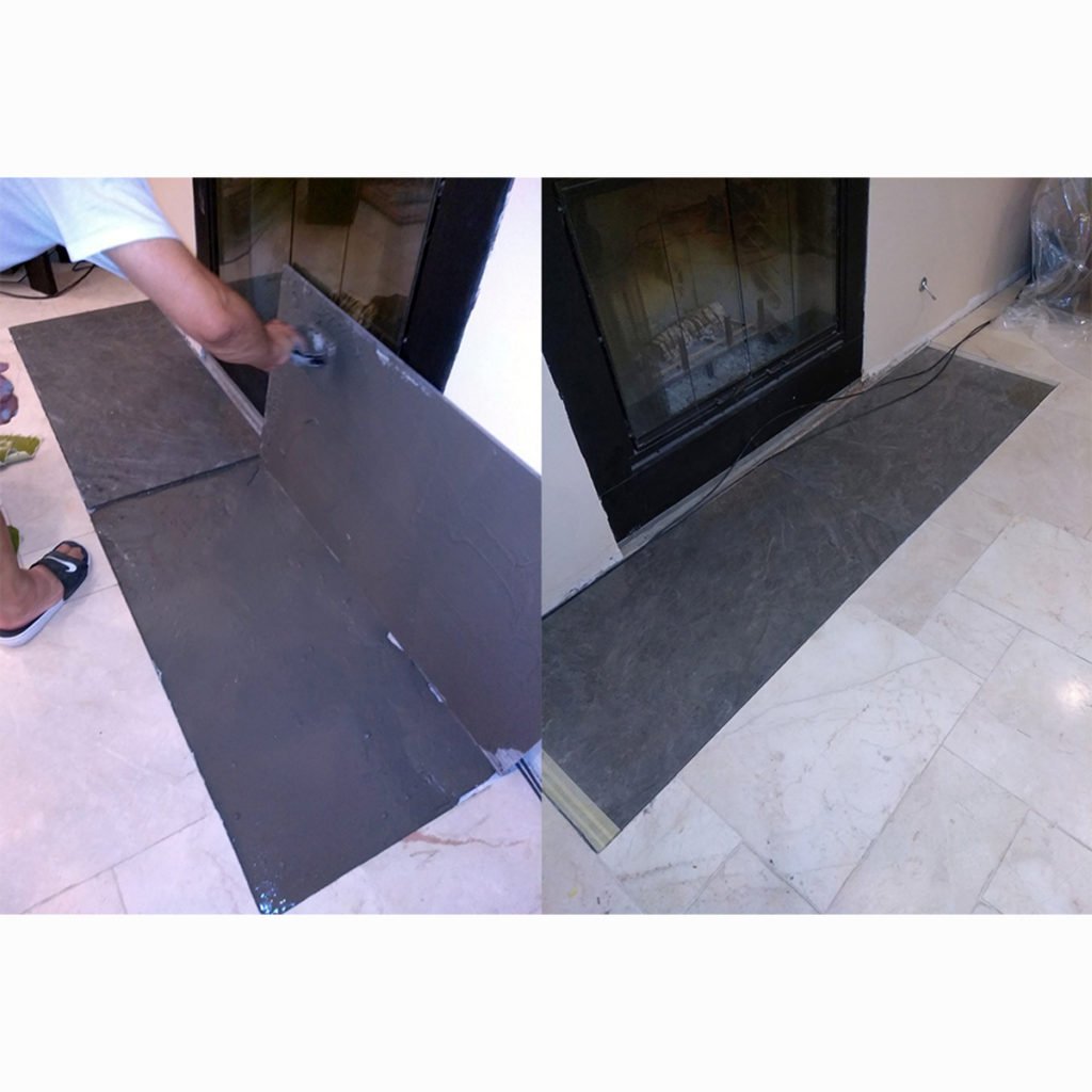 Very pleased with the broken marble materials the client chose. This took 2 days. The structures over the spans can get tricky. We’re awaiting the mantle.