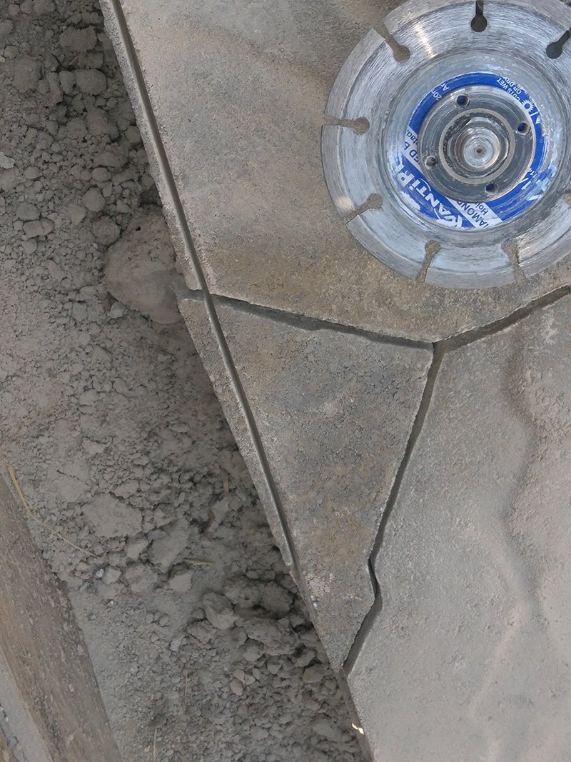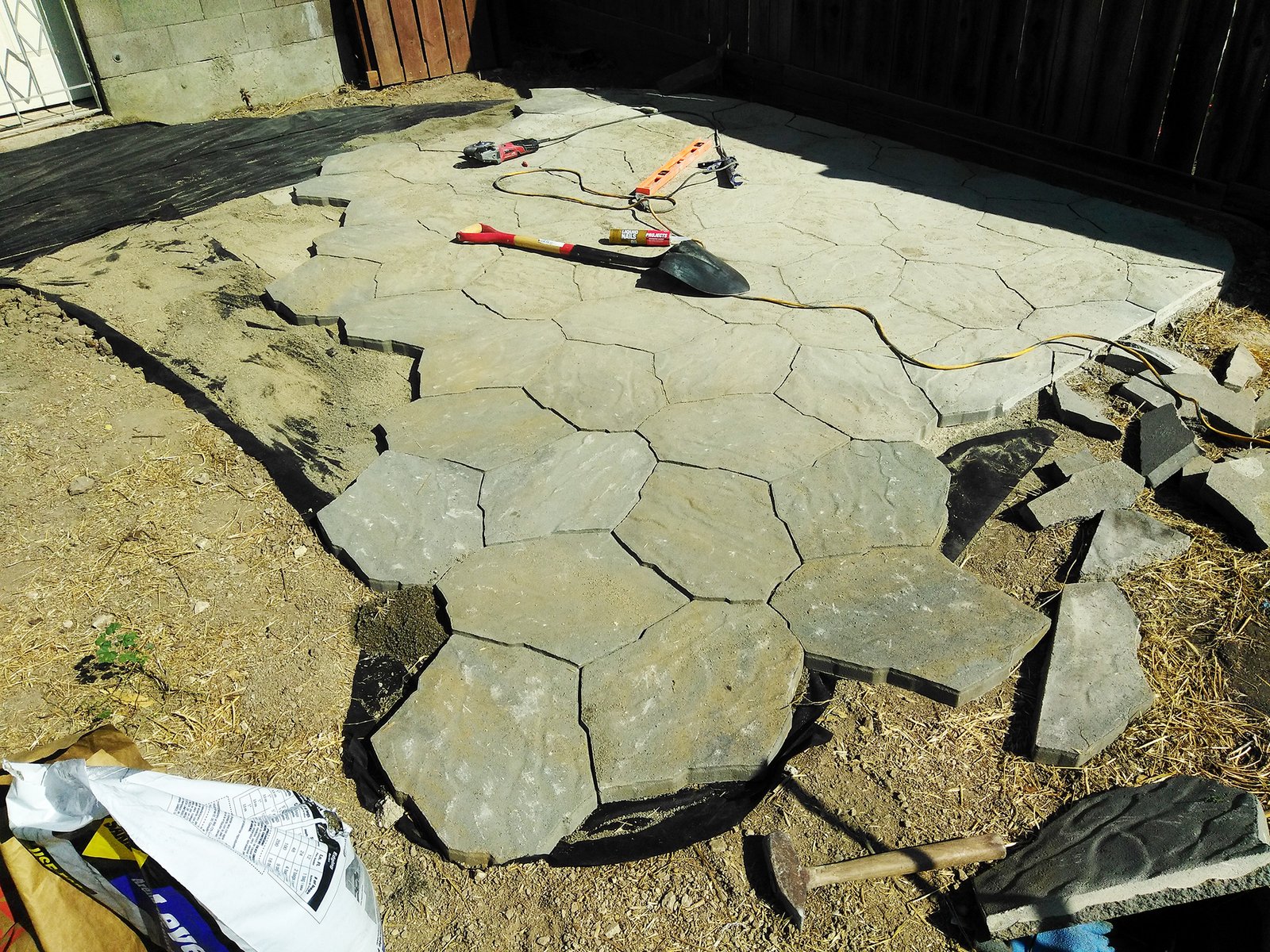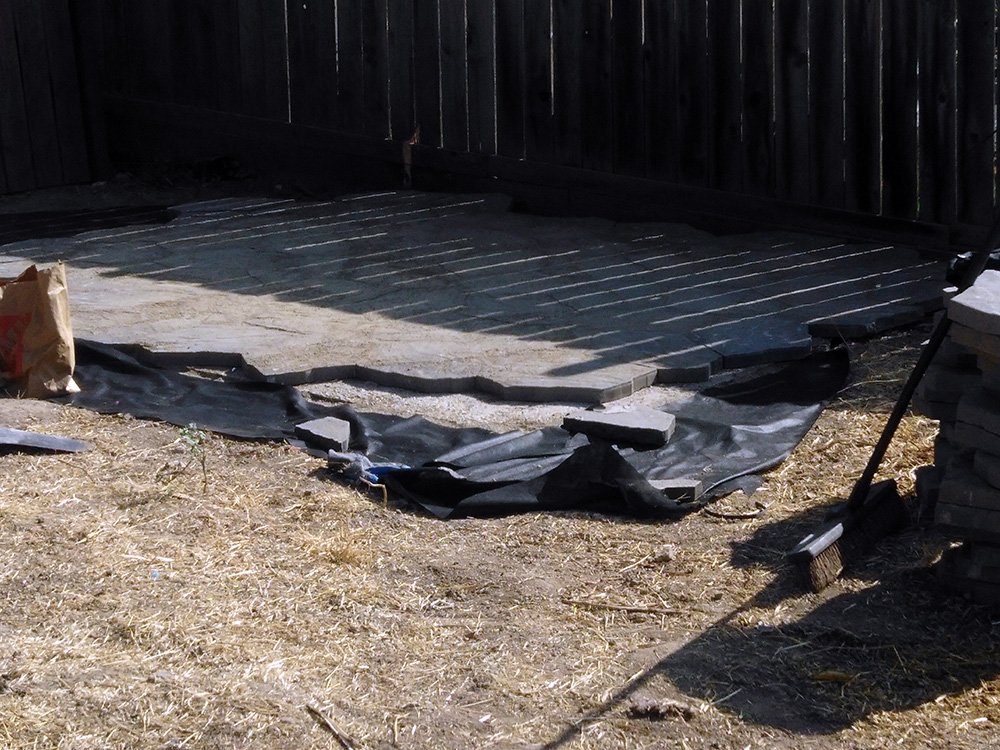This was very exacting work that used a bed of paver gravel over landscaping fabric, gentle grading for rain drainage and runoff, and an angle grinder and masonry saw for the precision cuts.