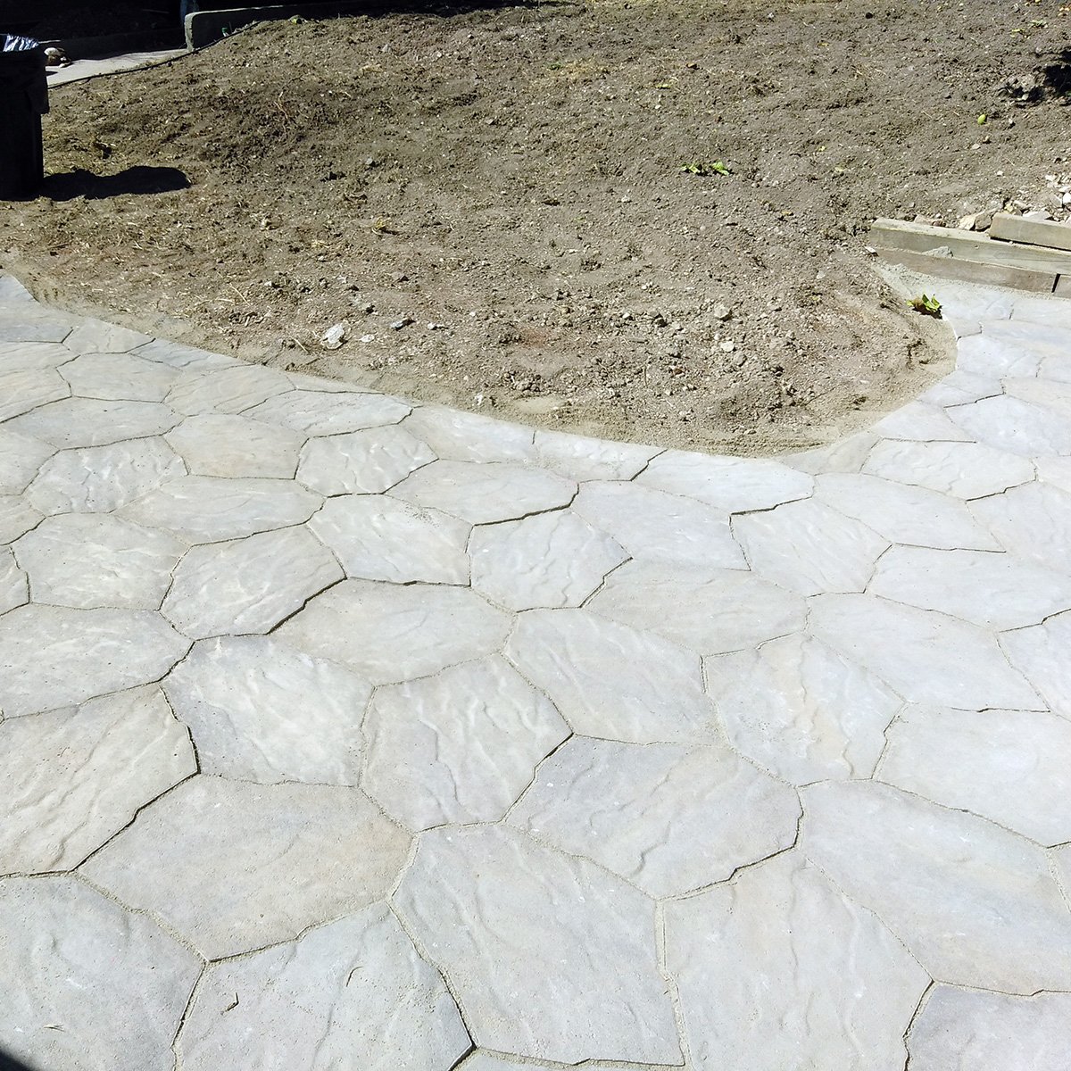The patio was originally going to be brick. In a herringbone pattern, and mostly an ‘L’ shape. But the client selected a stone from Lowe’s that was an irregular shape. We ended up using 135 stones to get about 170 square feet of coverage. Stepping stones will be added when the lawn begins to come in.