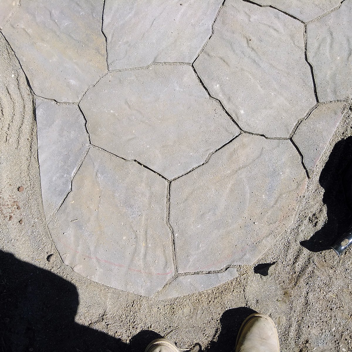 This was very exacting work that used a bed of paver gravel over landscaping fabric, gentle grading for rain drainage and runoff, and an angle grinder and masonry saw for the precision cuts.