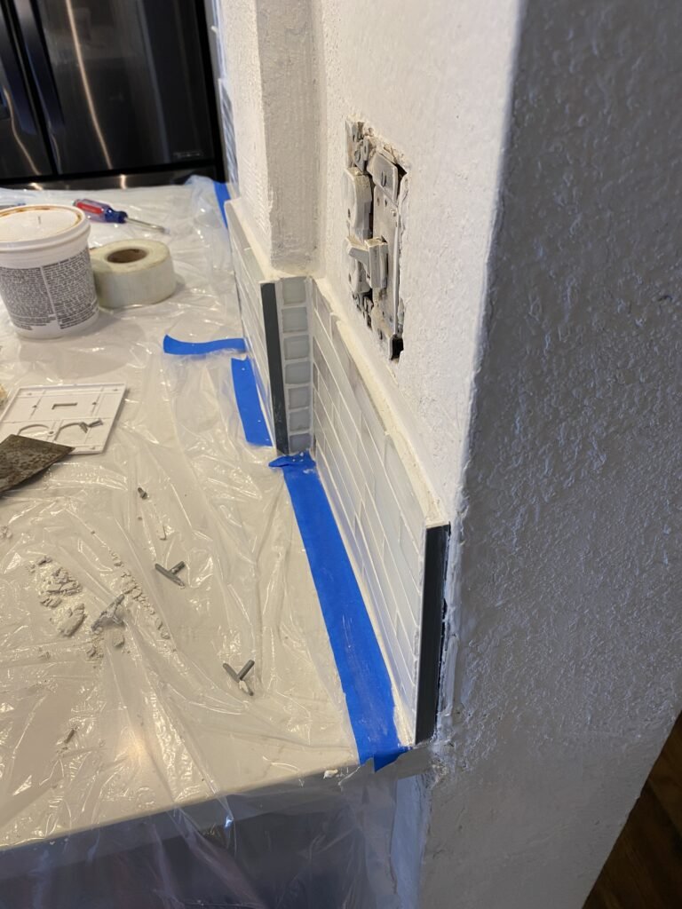 San Leandro Backsplash, And Drywall Repair, February, 2024Pretty conventional. Used Liquid Nails ‘Fuze It’ as adhesive. Snips for mosaic tile. It went quickly.